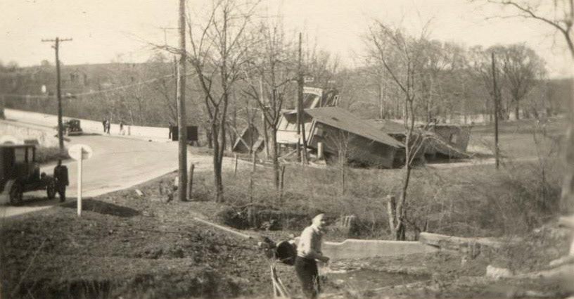 On St. Patrick's Day 1936, a perfect storm sent torrents of rain water and melted snow cascading into the Potomac River valley [see Flood of 1936]. From Cumberland to Great Falls, the Potomac swelled out of her banks. At Williamsport, the river crested at over 49 feet, four feet higher than the famous Johnstown flood of 1889.