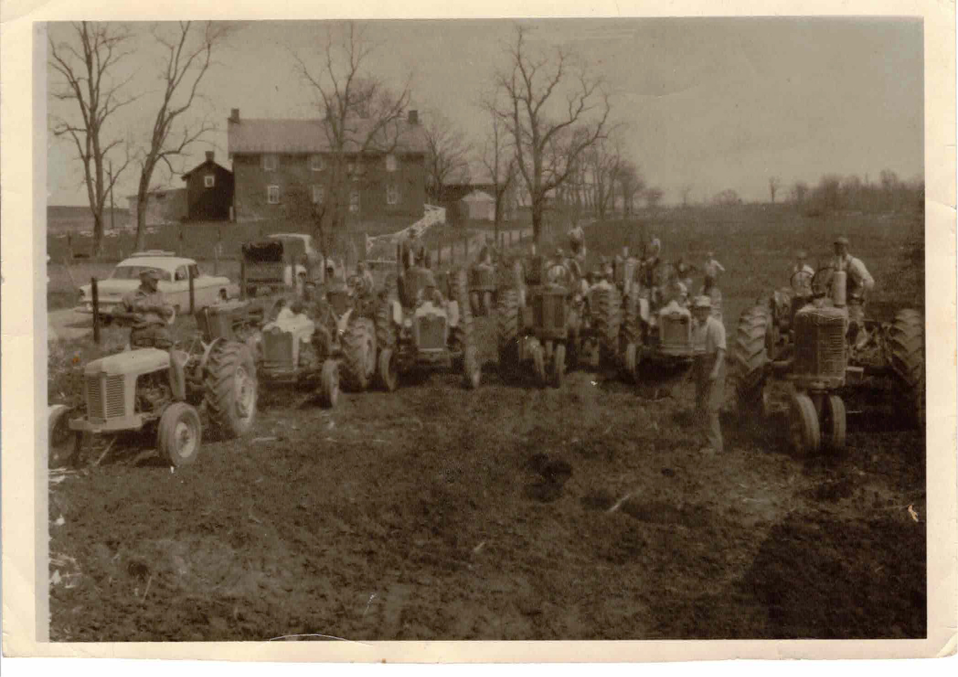 This photo was taken at Spielman and Bakersville Road intersection when the Downsville farmers met to plow and plant an immense field. The produce was sold to benefit the church fund.