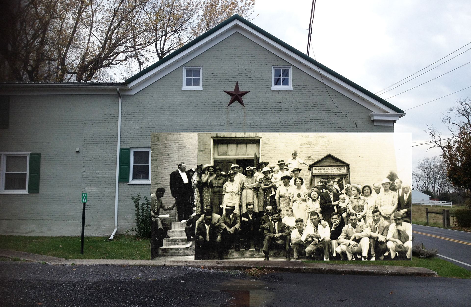 July 1938 Photo of the Bethany Congregation superimposed over a modern photo.