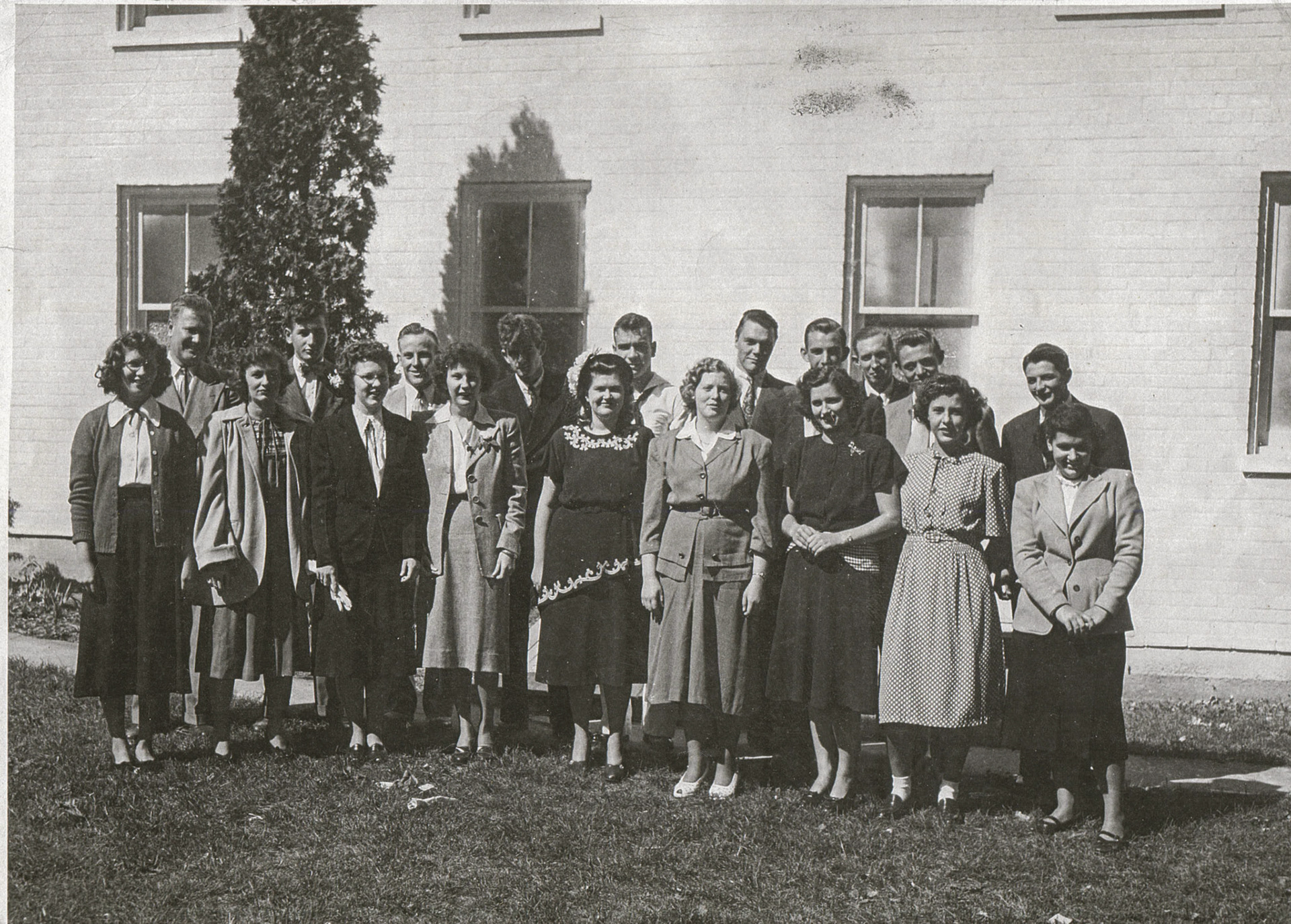 Undated photo of students at the Downsville School. The clothing suggests about 1915-1920.