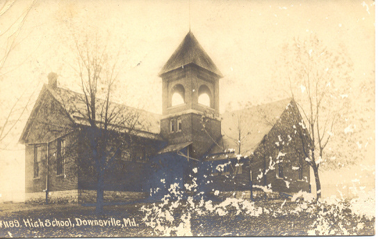 Downsville was founded in 1848 and was named for Charles Downs, the first storekeeper, who died in 1857. The first house, which was made of logs, was built by Anthony Lampkin and stood on the site of the parsonage. The second was built by Christopher Shank and was located near what is now T.J. Fahrney’s store. This house was later destroyed by fire and remained in ruins for many years. The third was built by George Taylor being called the Point Look-Out house, which has recently been converted to a stable. This house was for a long time the only one in the triangular tract of land made by the present state road, Hagerstown pike and the Natural Well road. The house now occupied by B. F. Daugherty and Henry Davis were built in the other angle.