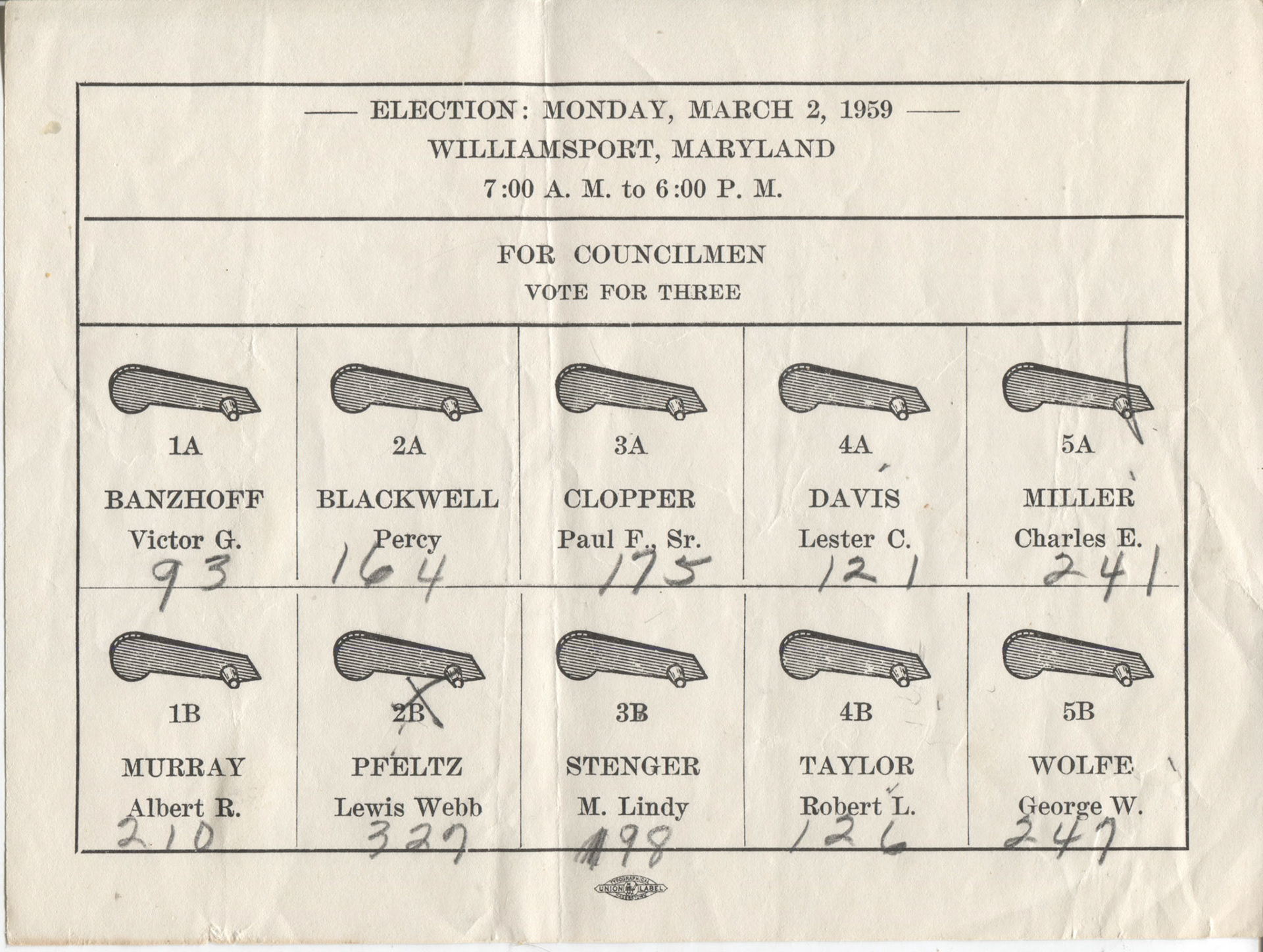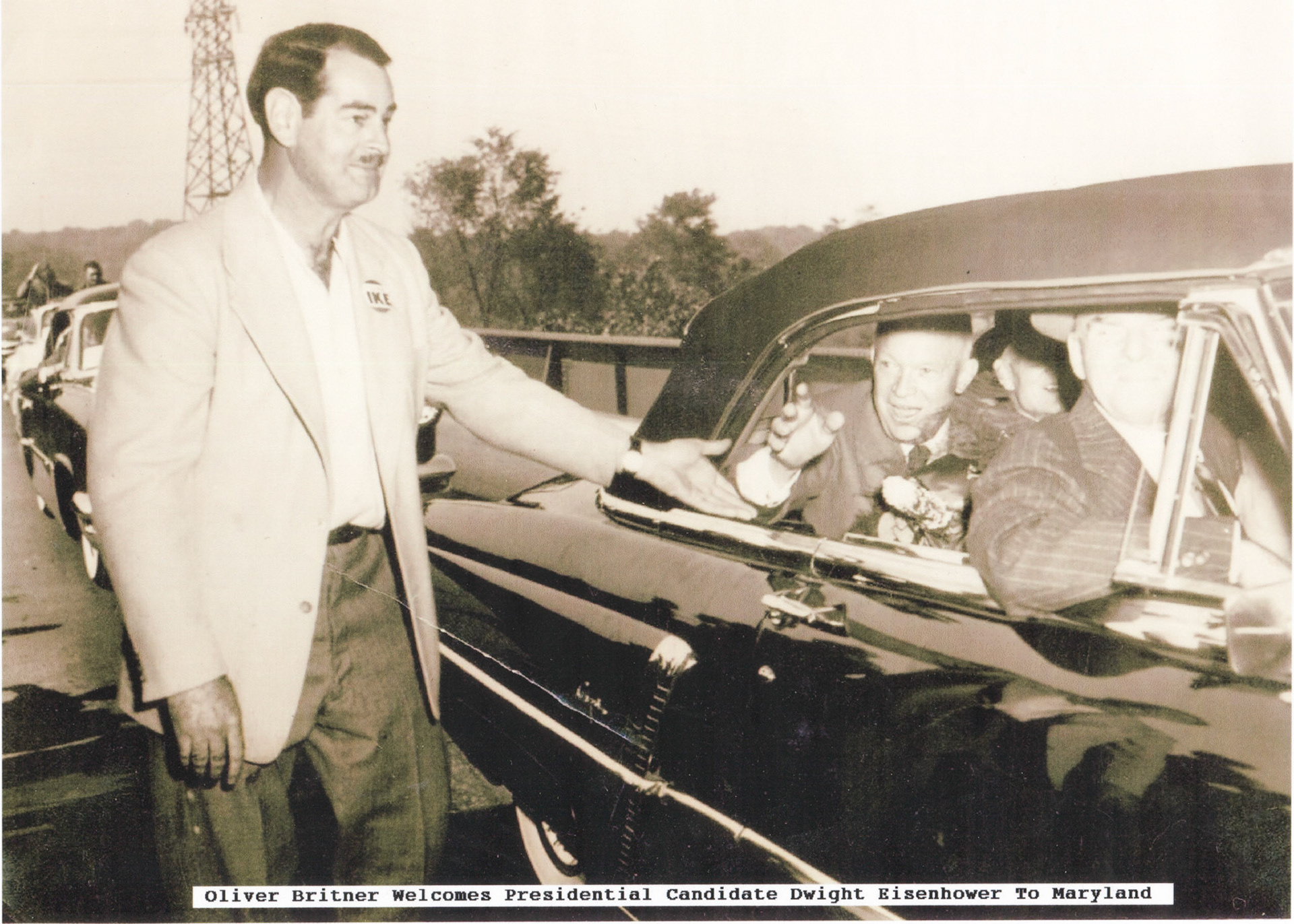 On September 26, 1952 , candidate for President General Dwight Eisenhower passed through Williamsport. Oliver Britner, one of the attendants at the Potomac River Bridge tollhouse, was selected to present Mrs. Eisenhower with a large bunch of red roses.