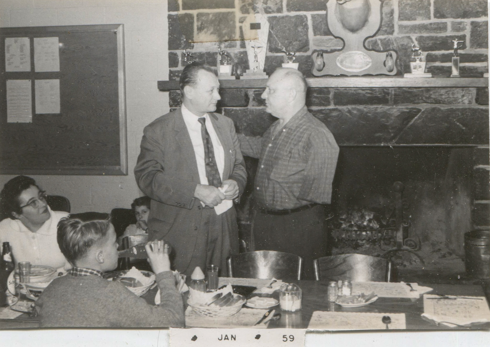 John H. Hetzer on the right. John lost his arm in a work-related accident at the Power Plant. After the accident, he continued in management. He was a former Magistrate of Williamsport.