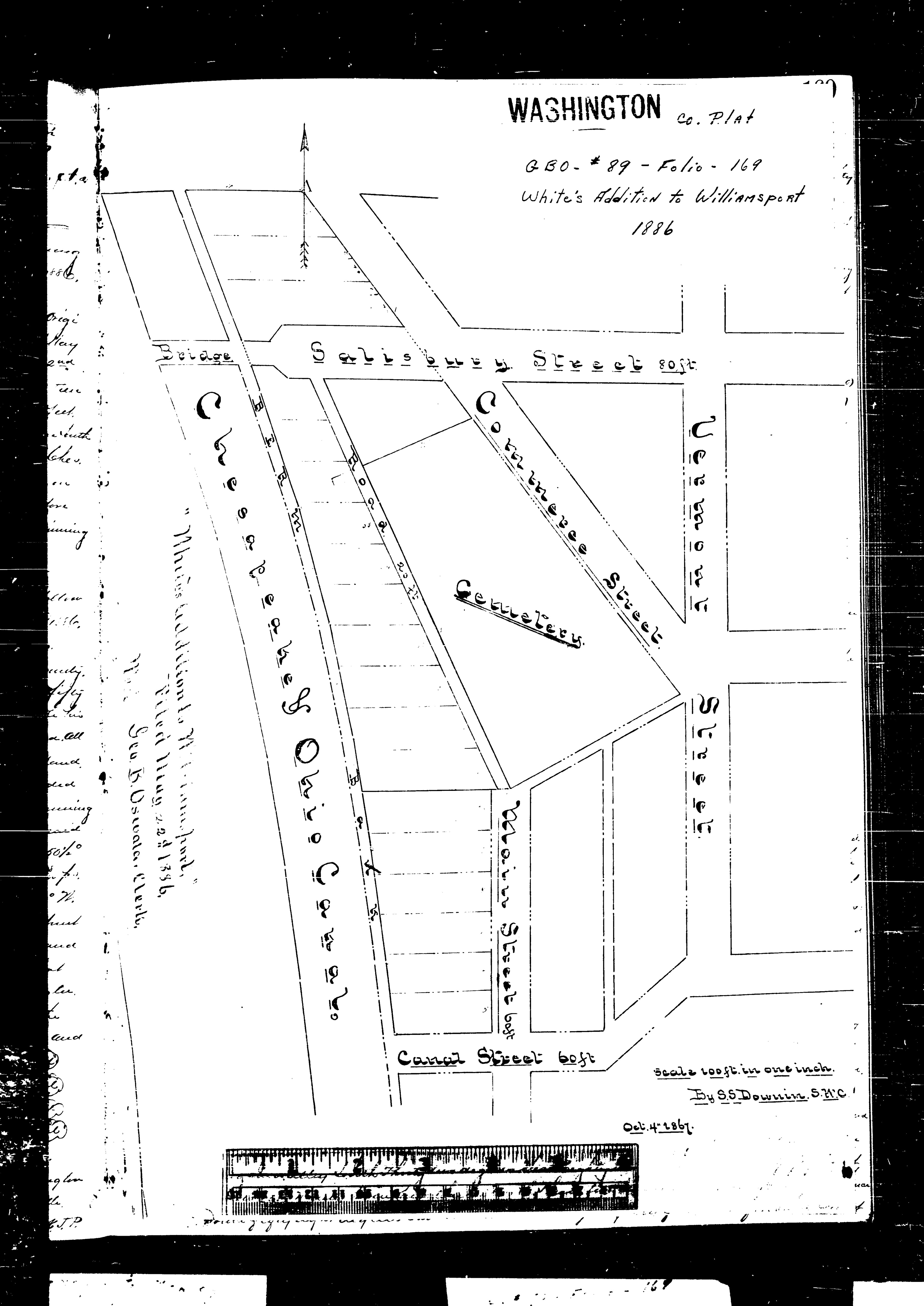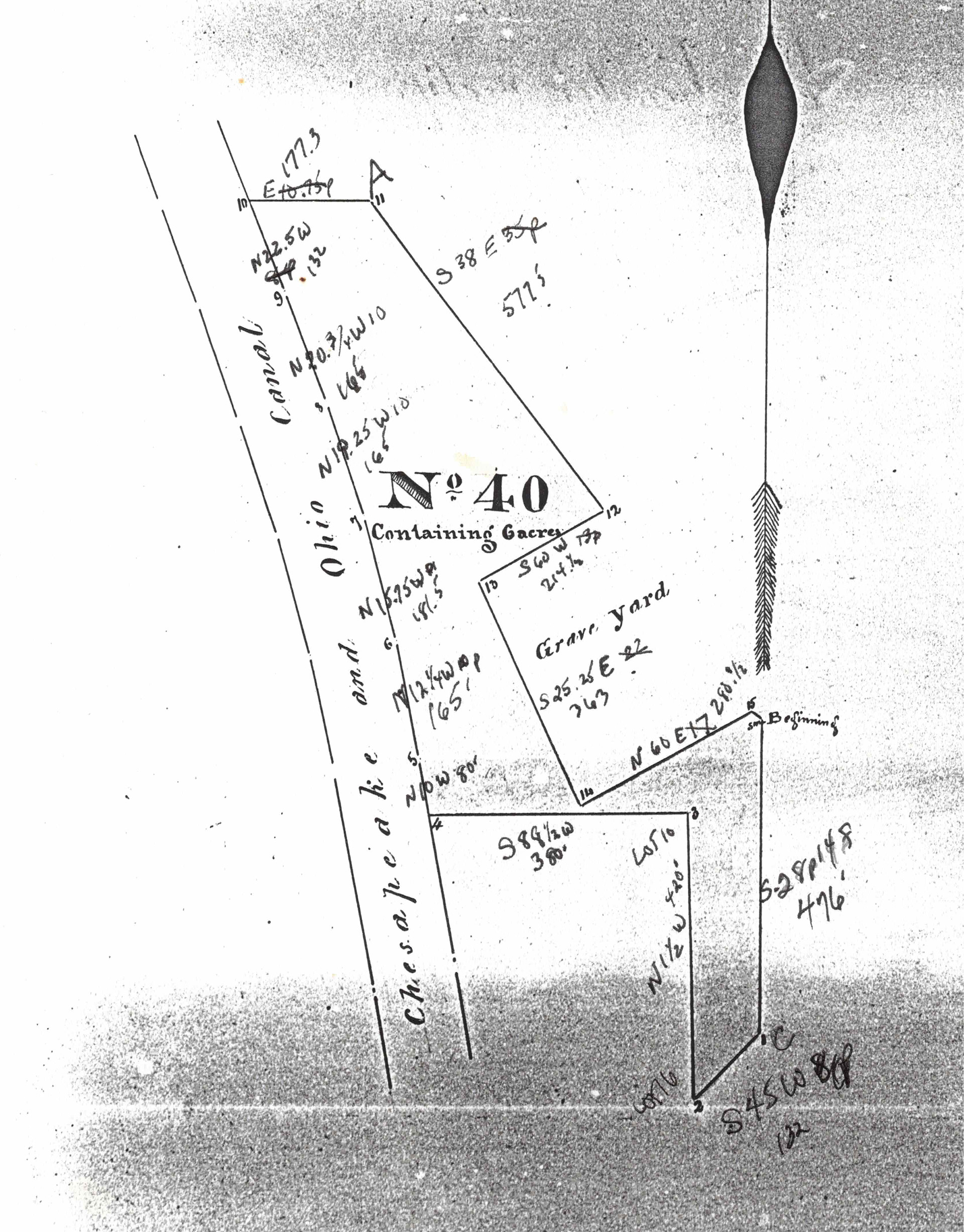 The 1876 plat of Williamsport's revised boundaries that included the graveyard