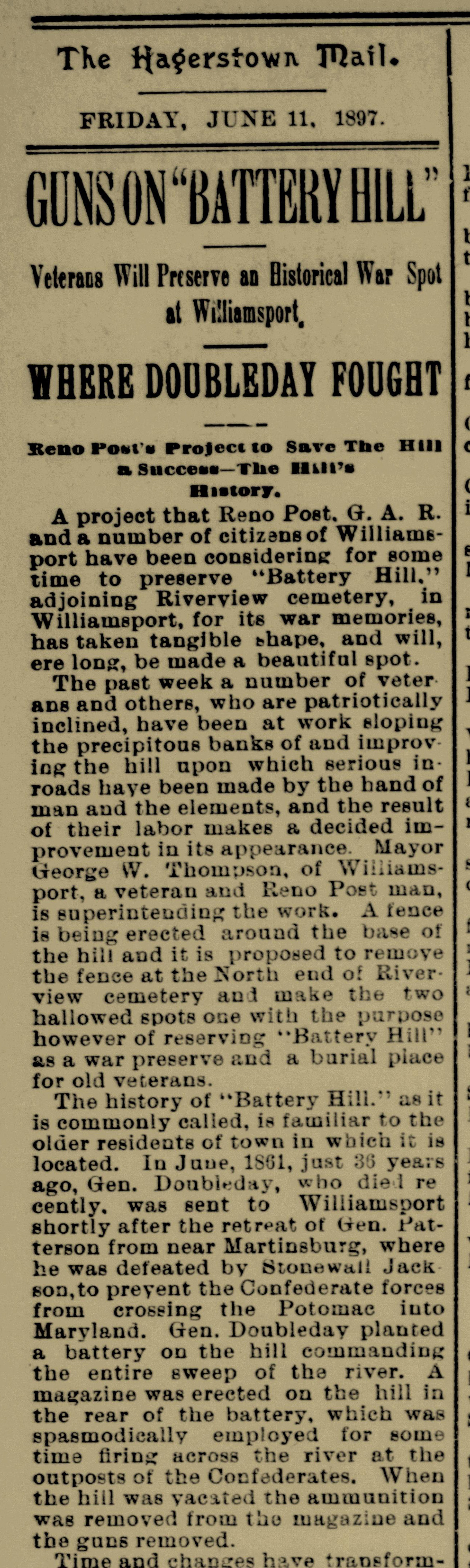 Williamsport and is buried in River View Cemetery. For a time, Joseph Green in Prince George's County received a pension rightfully entitled to Joseph Green from Williamsport. This case was eventually
