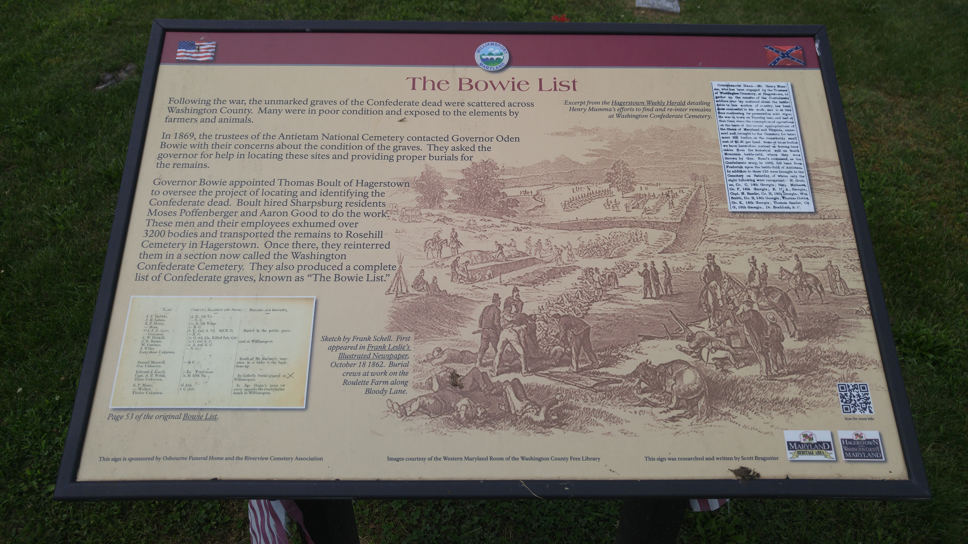 Many men from the area enlisted into the 4th Regiment in August 1863. Marshall, 19, whose occupation was listed as a boatman, likely on the C&O Canal in Williamsport, was among them. Marshall was wounded June 18, 1864, and sent to the Balfore General Hospital in Portsmouth, Virginia, and discharged for disability May 3, 1865.