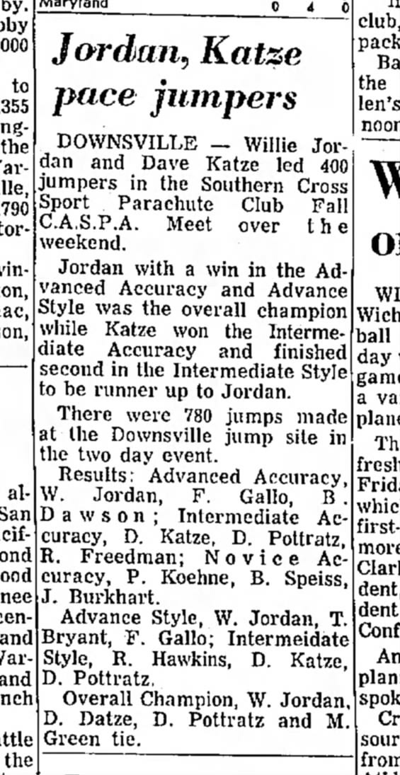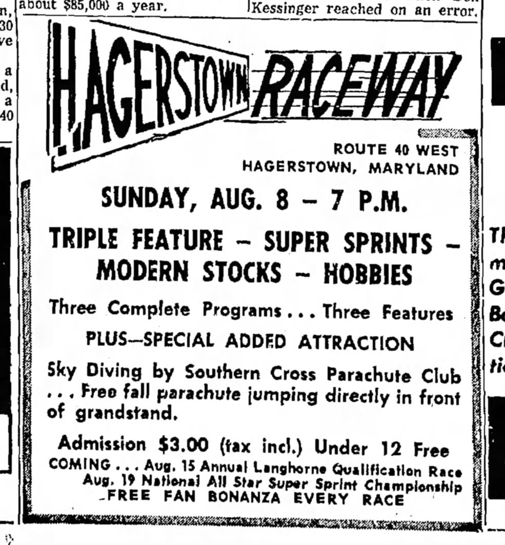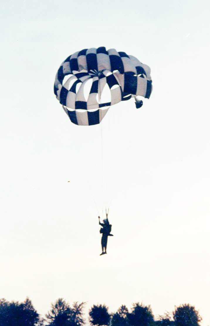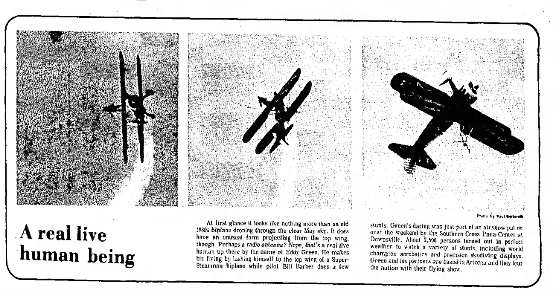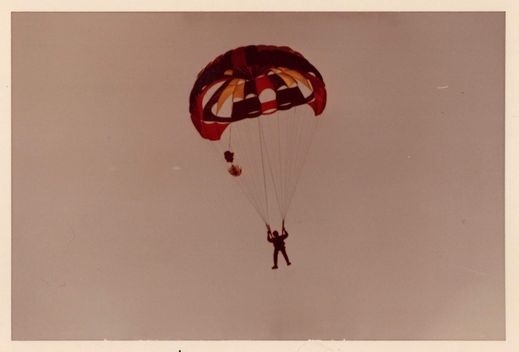 Bernie Moleski coming in for a landing at the 1973 Mack Truck Company Picnic. The newspaper reported over 15,000 attended the event.