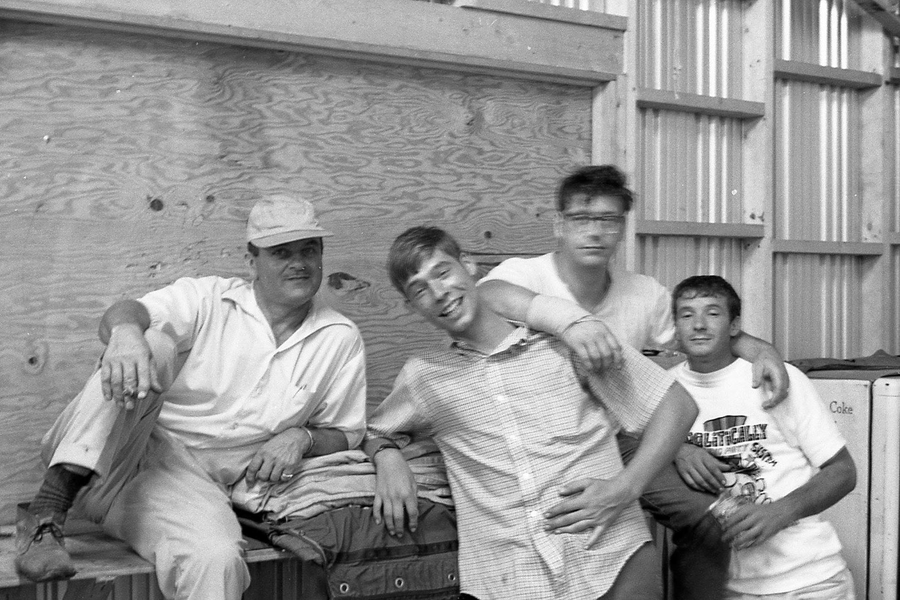 Gil Wieland, Kent Schreiber, unknown, unknown in the hanger at Downsville