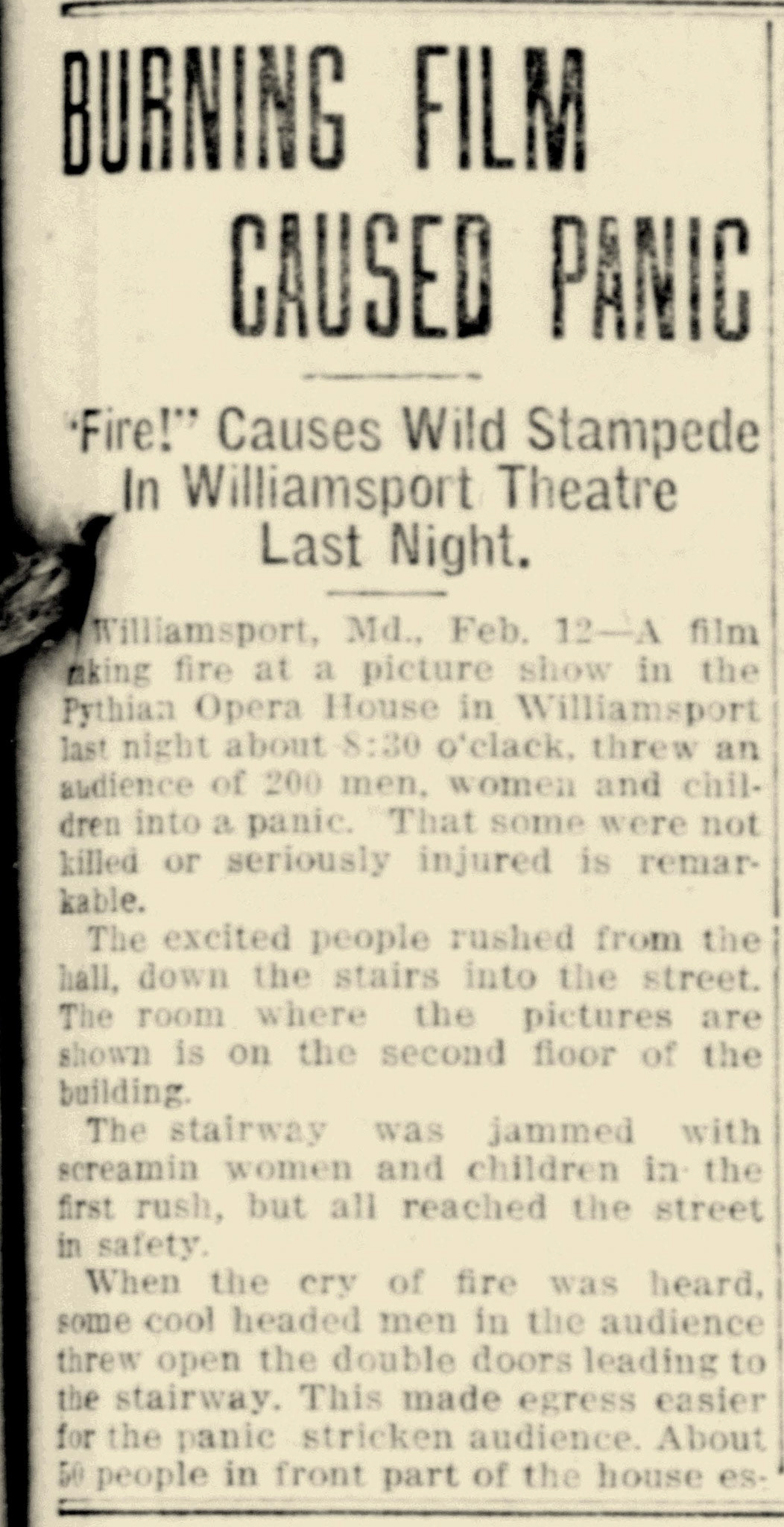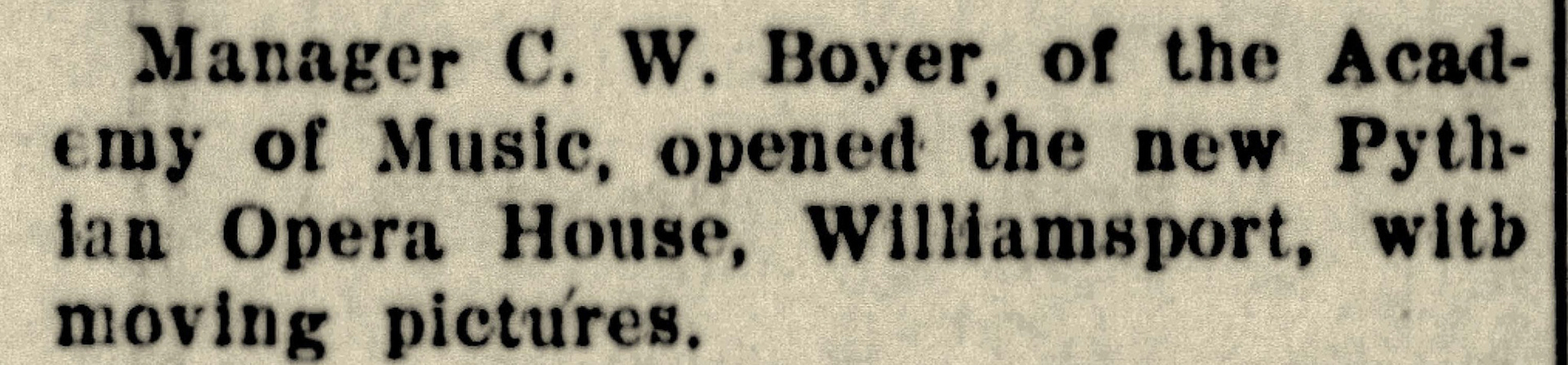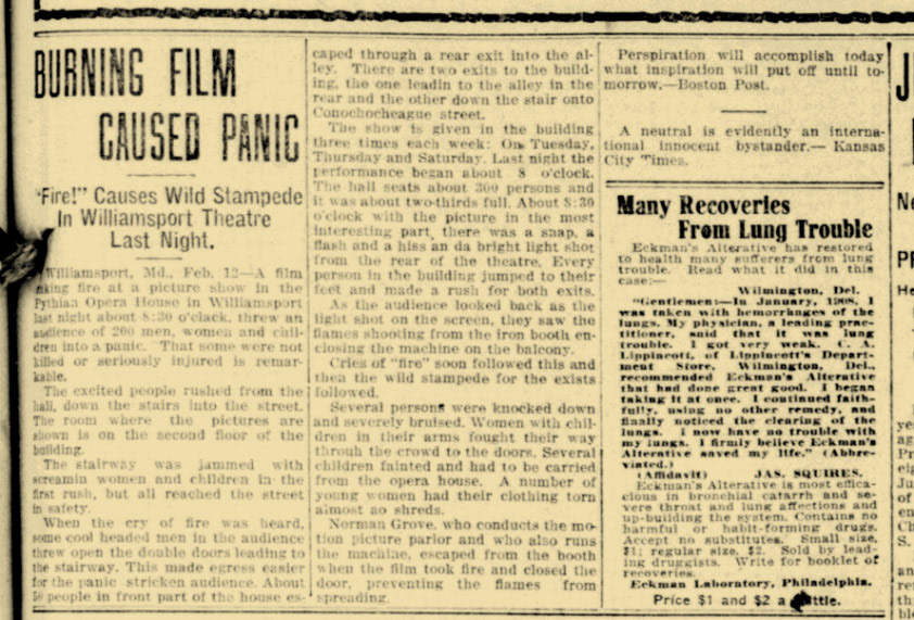The first moving picture shows were offered on the second floor of Pythian Castle in 1909.